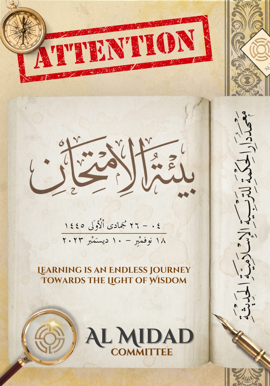 Materi Bahasa Arab meliputi mahfudzot, mutholaah, durusullughoh, nahwu, shorof, balahgoh. Materi Bahasa Inggris meliputi dikte, tata bahasa, terjemahan, membaca. Materi Al-Quran meliputi Qiroah, Tajwid, Ibadah Amaliyah, Ibadah Qouliyah, Hafalan Juz Amma, Fiqh. Ujian syafahi semester pertama tahun pelajaran 2023/2024 dilaksanakan pada tanggal 18 November sampai dengan 10 Desember 2023 untuk kelas 1-5 KMI. Adapun kelas 6 sudah terlebih dahulu melaksanakan ujian syafahi dan tahriri, dikarenakan santri kelas 6 setelah selesai ujian mereka dimintai membantu dalam ujian syafahi kelas 1-5 KMI. Guna menambah pengalaman dan pengetahuan baru bagi santri Akhir 2019.